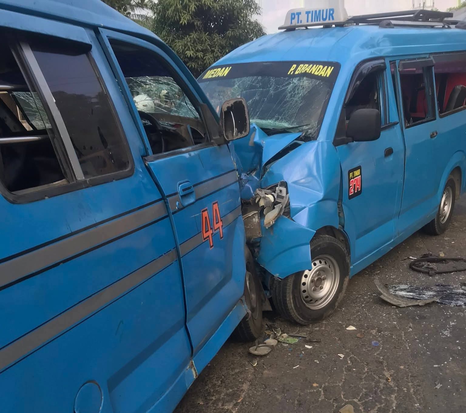 • Pengemudi angkot BK 1465 RK, Ramud Manik (40), warga Binjai, mengalami patah tulang pada kaki kanan, luka lecet di kaki kiri, serta nyeri pada tulang rusuk kiri. Ia saat ini sedang menjalani perawatan medis di RSU Mahkota Bidadari Gebang.