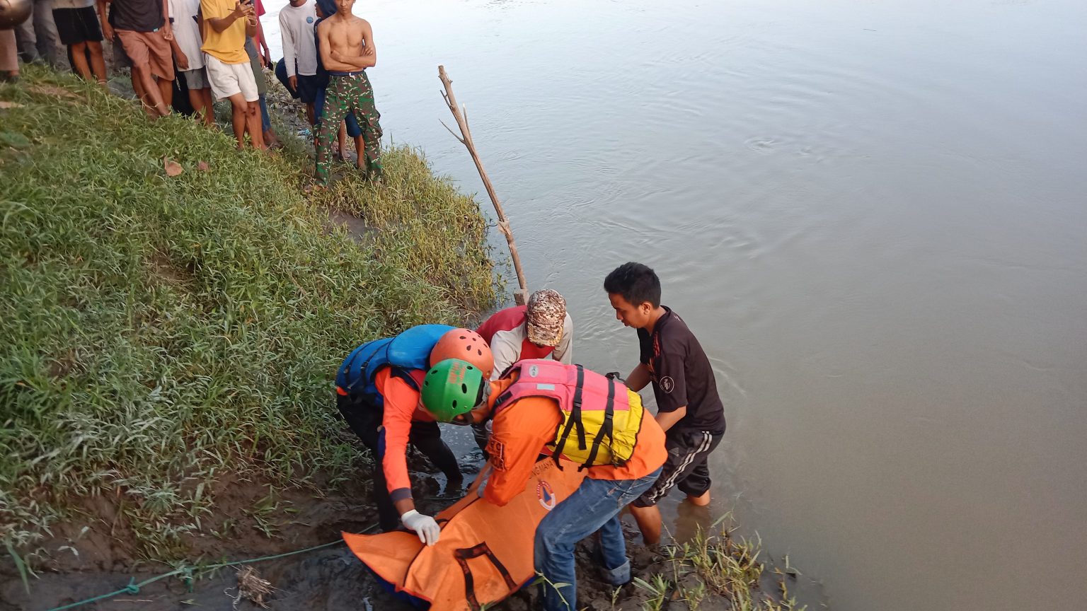 Peristiwa itu terjadi pada Minggu sore, 11 Januari 2026 sekitar pukul 16.00 WIB, ketika jasad korban ditemukan oleh seorang warga bernama Sahduddin (57) yang sedang memancing di sekitar aliran sungai. Warga melihat tubuh pria tersebut mengapung lalu menariknya ke tepi sungai dengan bantuan kayu dan mengikatnya sementara agar tidak terbawa arus.