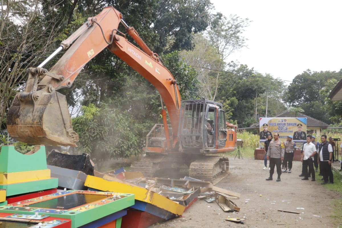 Langkat, Sumatera Utara– Kepolisian Resor (Polres) Langkat kembali menunjukkan komitmen kuatnya memberantas praktik perjudian ilegal di wilayah hukum Kabupaten Langkat. Dalam operasi terbaru, polisi melakukan tindakan tegas dengan menghancurkan sejumlah mesin judi menggunakan alat berat, sebagai upaya penegakan hukum dan menciptakan lingkungan yang aman dan tertib menjelang perayaan Tahun Baru.